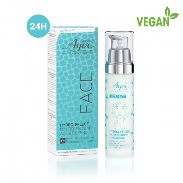 Die Hydro-Pflege ist ein funktionaler 24h-Moisturizer und ergänzt die AYER-Speziallinie ULTRA MAT für unreine, ölige Haut.