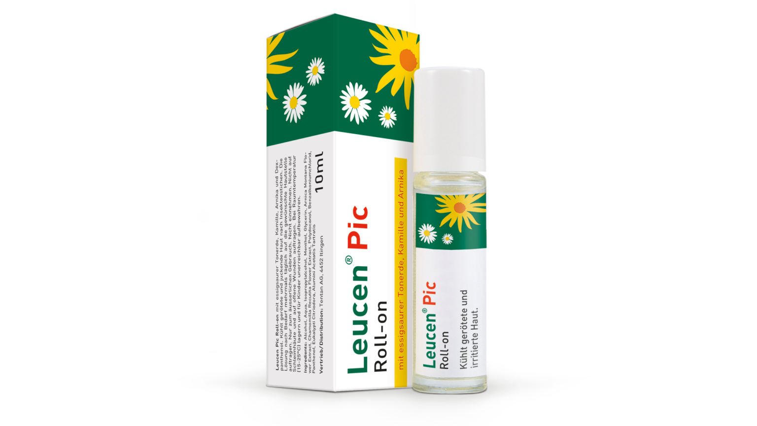 Der Leucen Pic Roll-on kühlt nach einem Insektenstich sofort die gerötete und juckende Haut und lindert so den Schmerz. Weiter hält die Lösung dank ihrem Geruch Insekten fern. Deswegen empfiehlt es sich, bei Outdoor-Aktivitäten Leucen Pic Roll-on immer im Gepäck zu haben, um die schönen Seiten des Sommers unbeschwert geniessen zu können.